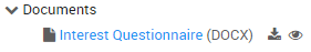 This section lists all documents that have tied to the item being viewed. This provides users with a list of relevant documents, as well at the ability to directly access these documents. Users are additionally provided details regarding the document type (docx, pptx, URL, xlsx, etc.)
