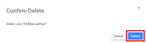 2. The following box will appear and you will be able to delete the User by clicking on the “Delete” box