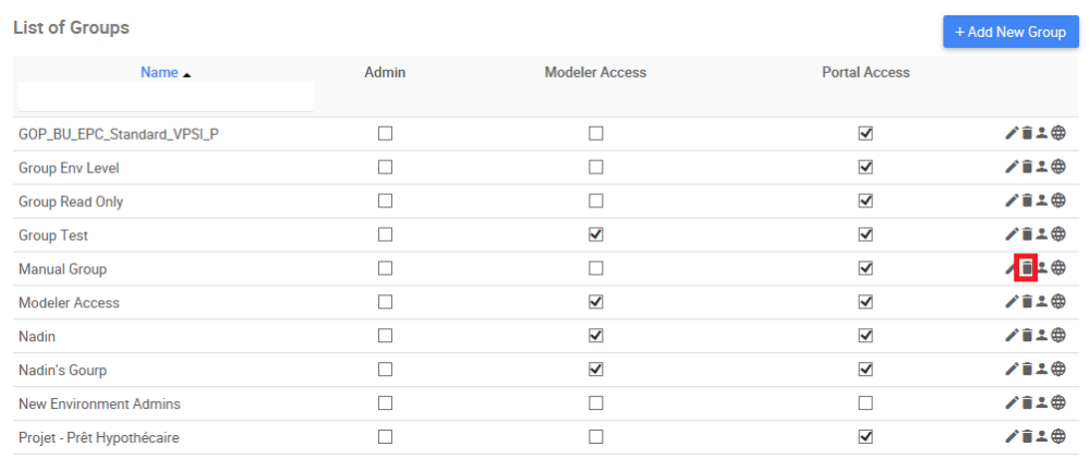 Under the Group tab, System Admins can delete Groups that are no longer useful.