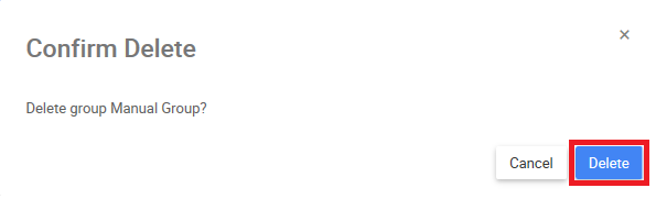 2. The following box will appear and you will be able to delete the Group by clicking on the “Delete” box