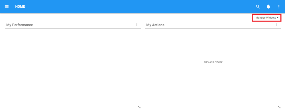 2. Select the “Manage Widgets” icon which will generate a drop-down menu