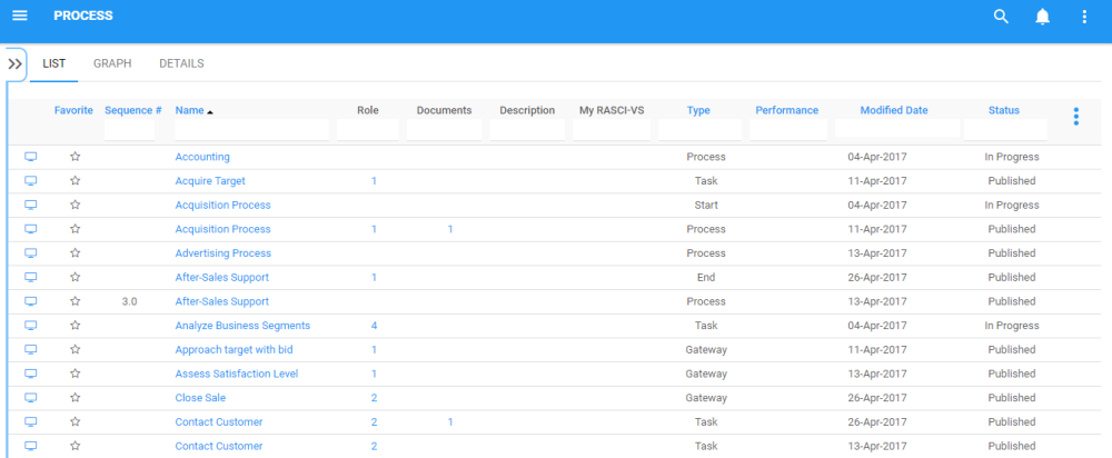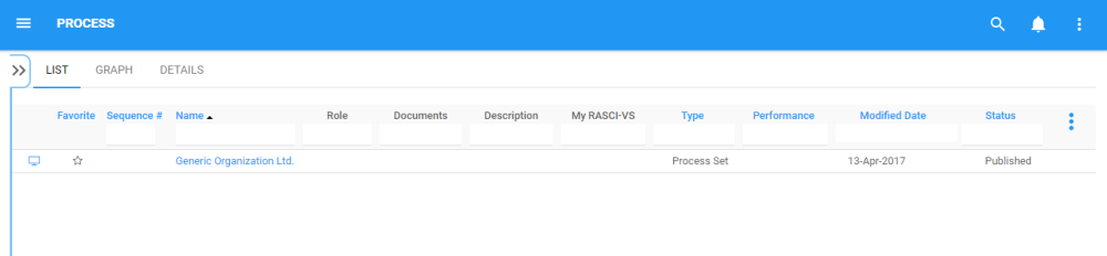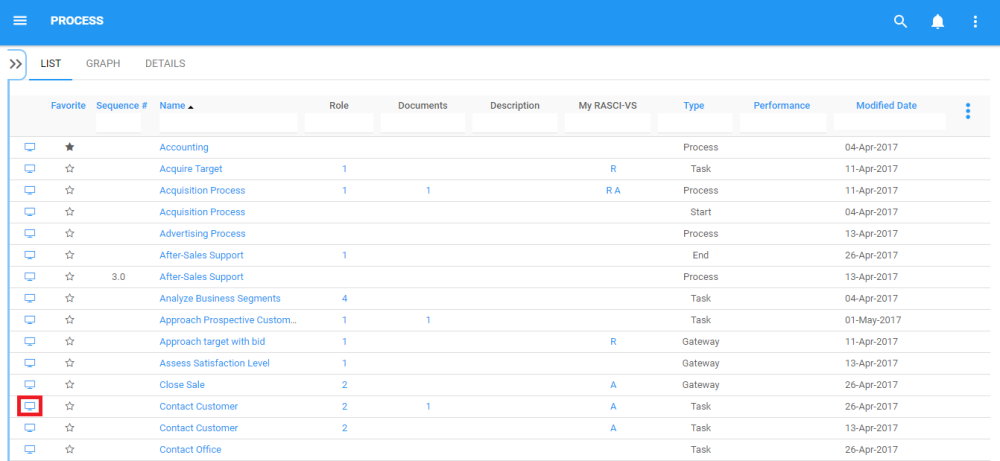 3. By default, you will be directed to List View in the Process module (as seen below).