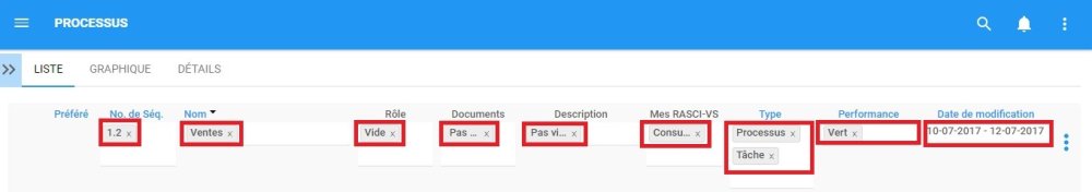 Exemple: La liste est filtrée par une combinaison de filtres sur chaque colonne.