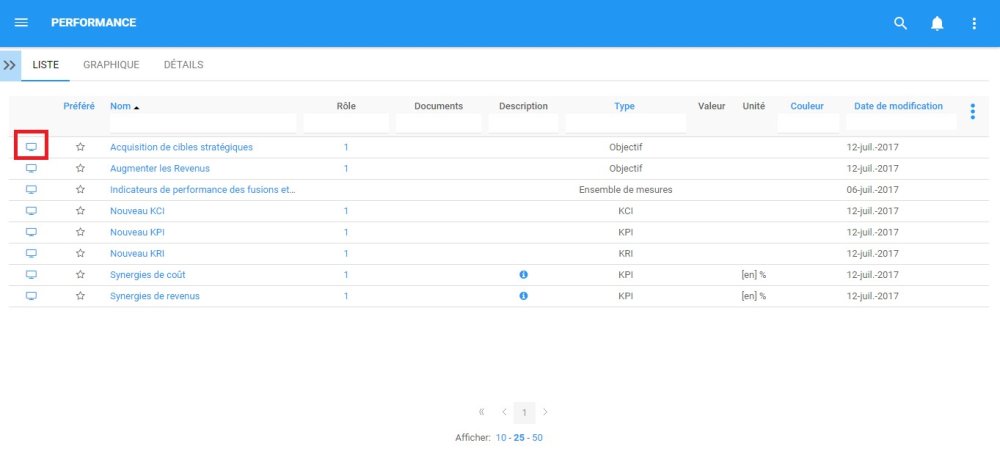 La vue Graphique rapide est une fonctionnalité de l’Application Web EPC qui permet aux utilisateurs d’afficher immédiatement un graphique associé à une mesure de performance ou un objectif. Bien que les Graphiques soient expliqués plus en détail ci-dessous, la vue Graphique rapide permet aux utilisateurs de naviguer rapidement vers un graphique à partir de la “vue Liste”.