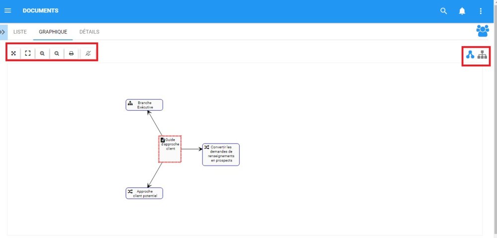 La navigation dans la section graphique est contrôlée par la barre d’outils en haut de la page. La barre d’outils est divisée en deux sections.