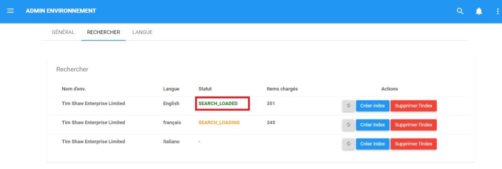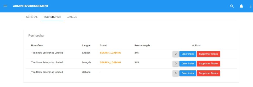 Pour que la fonction de recherche fonctionne efficacement, l’environnement et les administrateurs du système doivent remplir les indices dans EPC. Les indices, une fois téléchargés, permettent aux utilisateurs de les rechercher avec la fonction de recherche. Les indices de recherche doivent être créés et rafraîchis par la suite pour être utilisés le plus efficacement.