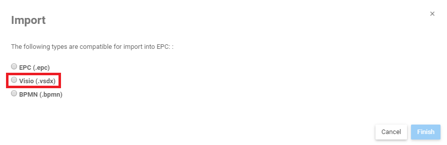 Follow the steps below to import data from an outside EPC environment. The format of the data file must be .vsdx.
