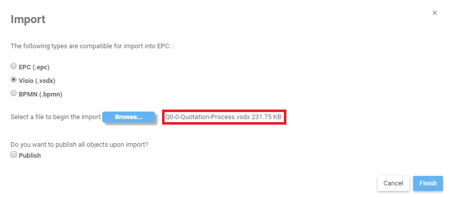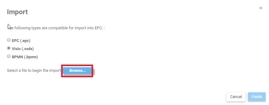 2. Select Visio (.vsdx) and click Browse to select the file.