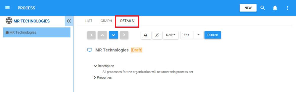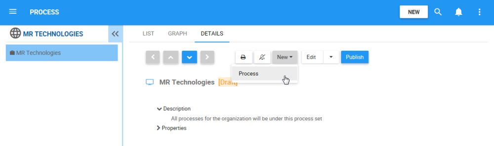 To create a new Process via the details tab of a set of sub-process, please follow the instructions below: