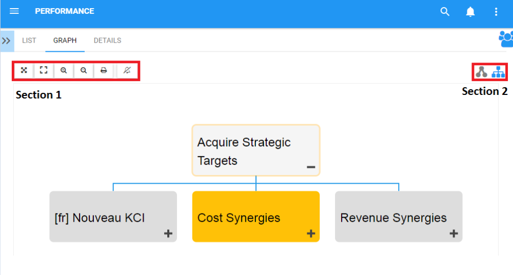 Navigation within the graph section is primary controlled by the toolbar at the top of the page. The toolbar is divided into 2 sections.