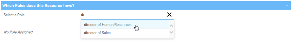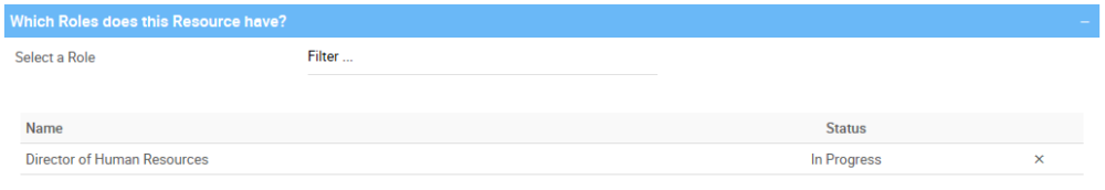 Resources have one or many Roles in the Organization. In this section, the Web Modeler can assign the roles for a resource.