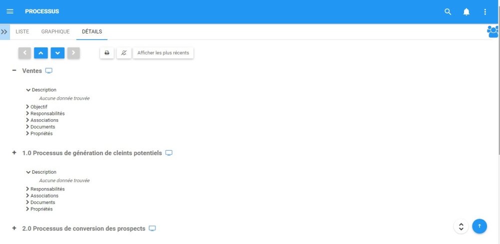 Les utilisateurs peuvent étendre les listes de détails pour afficher les sous-composants de processus et d’ensembles de processus spécifiques dans la page de détails. Permettre aux utilisateurs de développer les sous-composants permet aux utilisateurs de naviguer rapidement dans plusieurs sections de détails dans la même page.