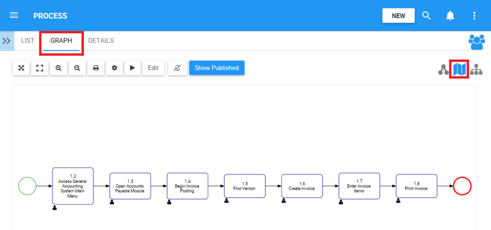 2. Navigate to the Graph section of the process. Ensure you are under the Map view
