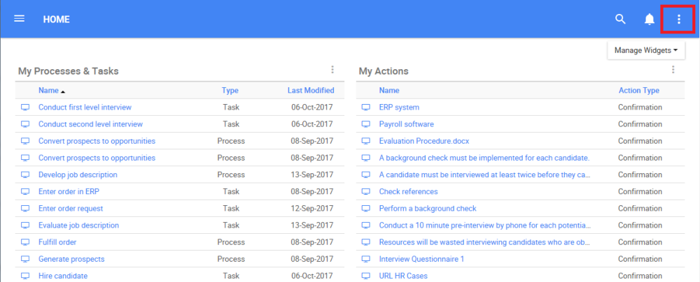 3. Select the icon and it will generate a drop-down menu