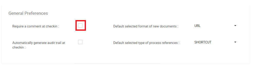 | Require a comment at checkin | When System Admin enables this preference, Modeler user must write a comment when checkin an item in progress or published on the Modeler |