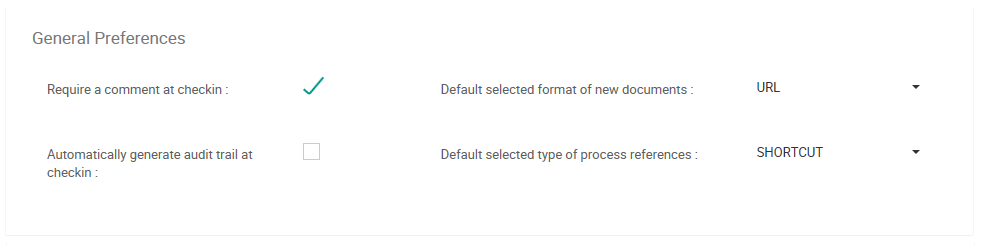 | Automatically generate audit trail at checkin | When System Admin enables this preference, an audit trial will automatically be generated at checkin |
