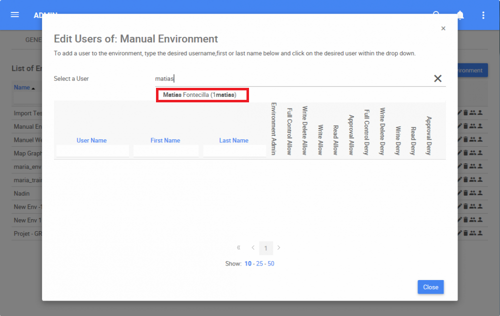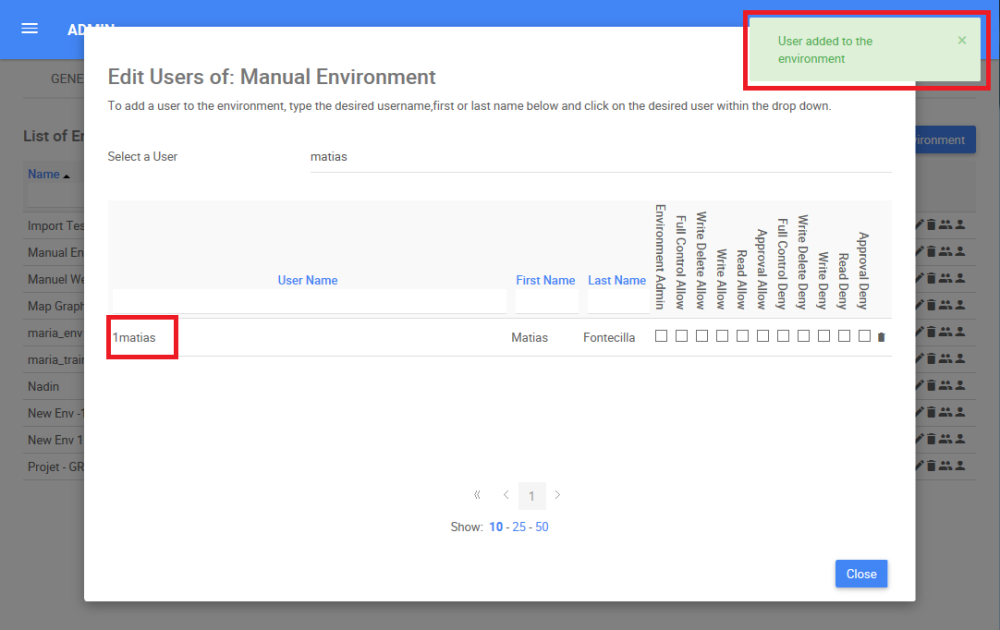 Under the Environment tab, System Admins can add Users to environments. Once the user is added, he will be able to see all the information available within an environment.