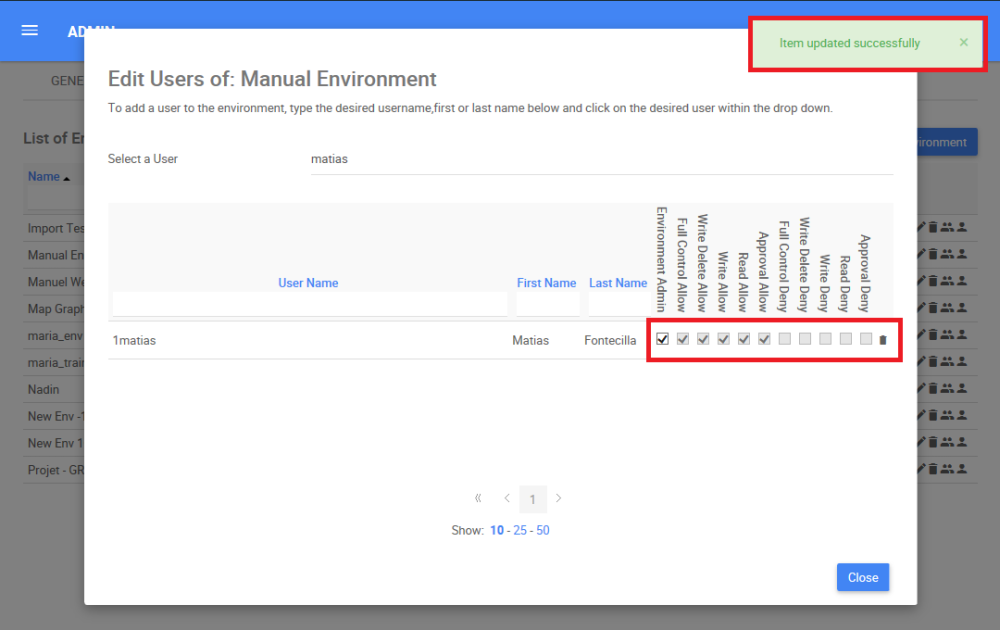 | Write Allow | User is allowed to write on the environment |