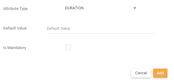 - For Duration, Number and Text, the information to add is the Default Value, and check the checkbox “Is Mandatory” to make the field mandatory for the users. The selection of one of these Attribute Types depends on the content of the Default Value.