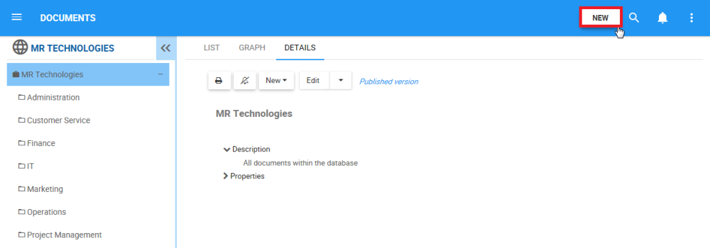 11. The new Folder “Human Resources” is now within the module’s tree structure (under a Set or Folder). This Folder is currently a draft. To learn how to publish Document objects, click here.