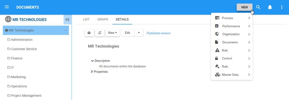 1. Click on the Navigation Menu Button on the top left of your screen and navigate to the Module in which you would like to create a folder (in this example, a Document Folder).