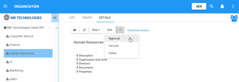 - Navigate to the details section of the object. In this example, an Organization Unit