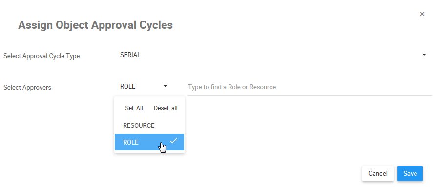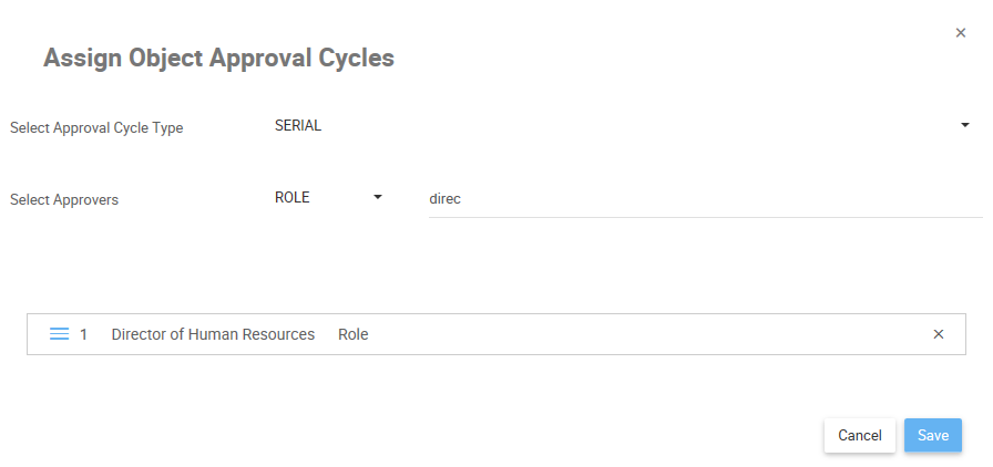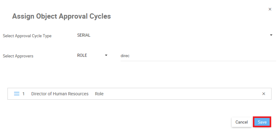 - You will be redirected to the Assign Object Approval Cycles window