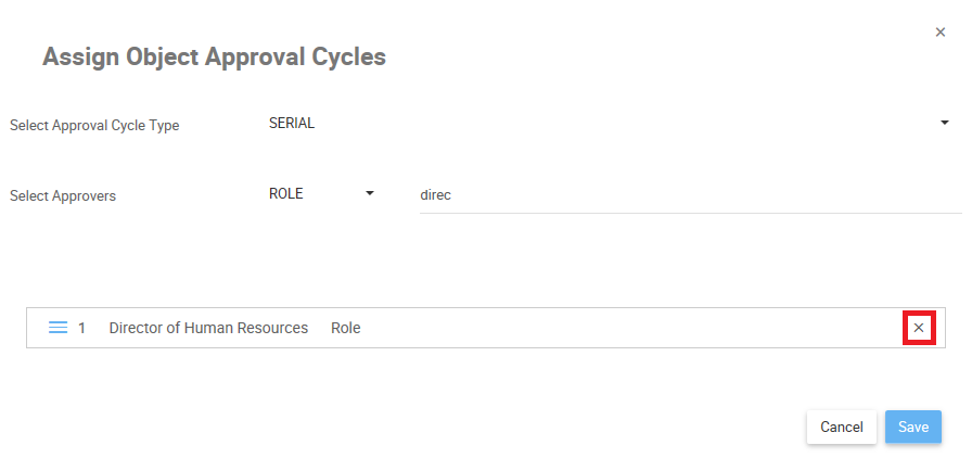 - To remove approvers from an Approval Cycle, click on the “x”