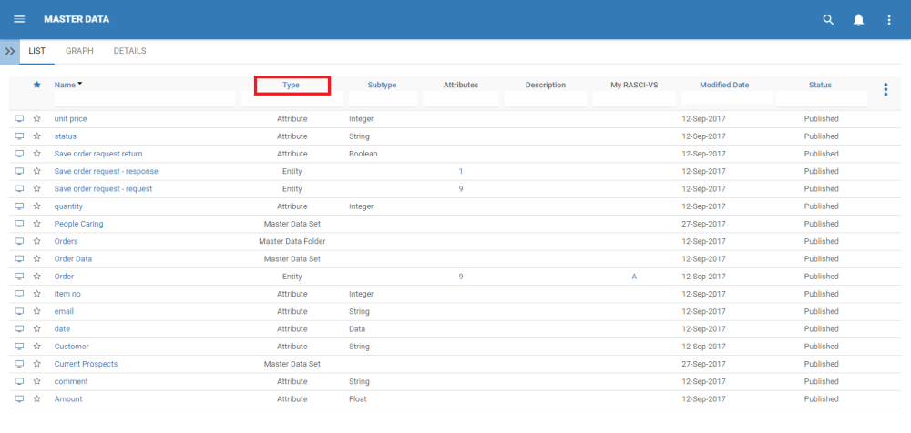 You can add filters to see the Master Data items and other specific items of your choice. Type what you are looking for, select the filter in the drop-down menu, or define the range of dates.