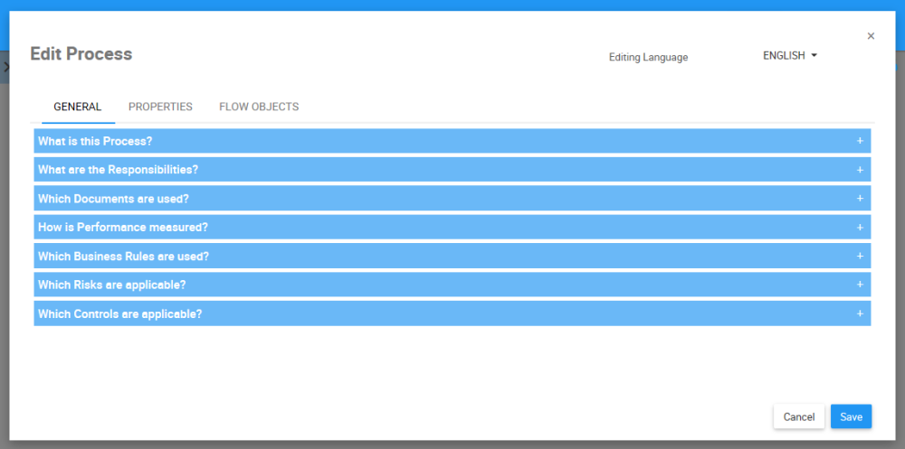 | Description | This field describes the process in detail, including the process procedures. The rich text format allows for text formatting, images, URLs, tables, etc. |