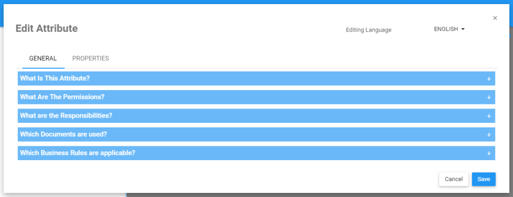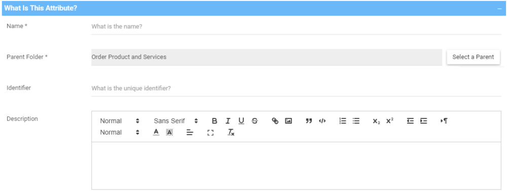 | Description | This field describes the Attribute in detail. The rich text format allows for text formatting, images, URLs, tables, etc. |