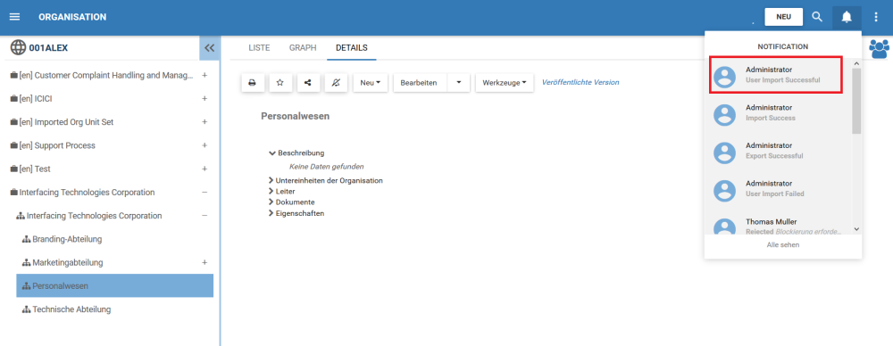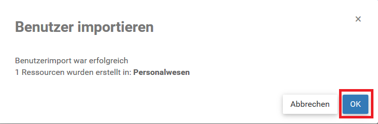 1. Sie erhalten eine Benachrichtigung, dass der Benutzerimport erfolgreich war
