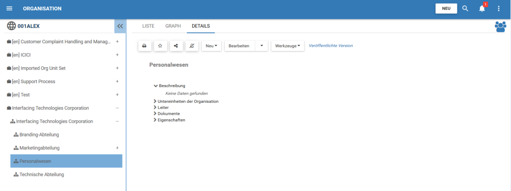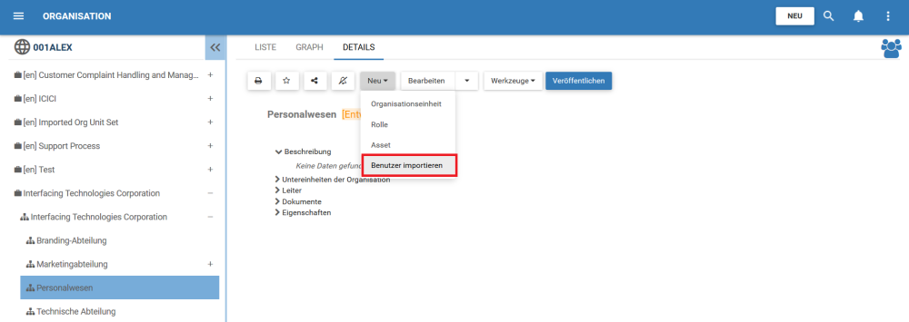 1. Navigieren Sie zum Detailbereich der Organisationseinheit, in die Sie Benutzer importieren möchten. In diesem Beispiel ist die Organisationseinheit “Personalwesen”.