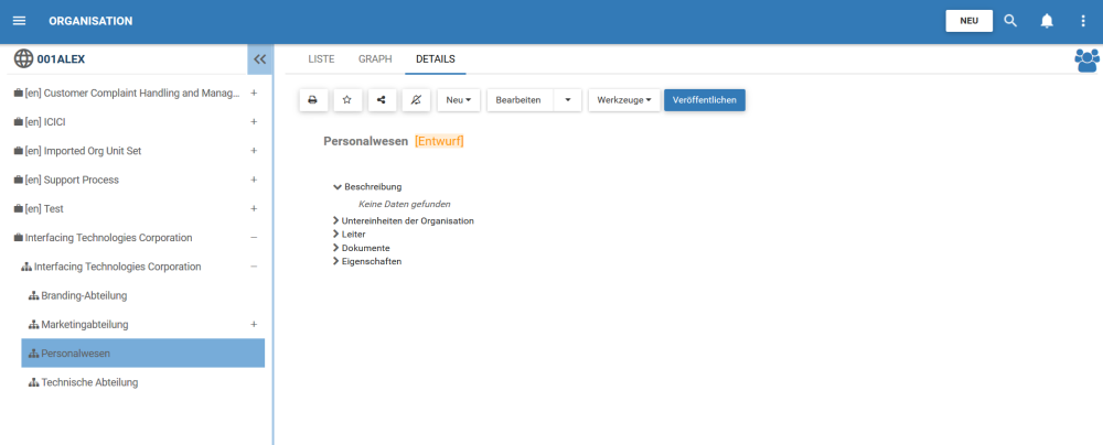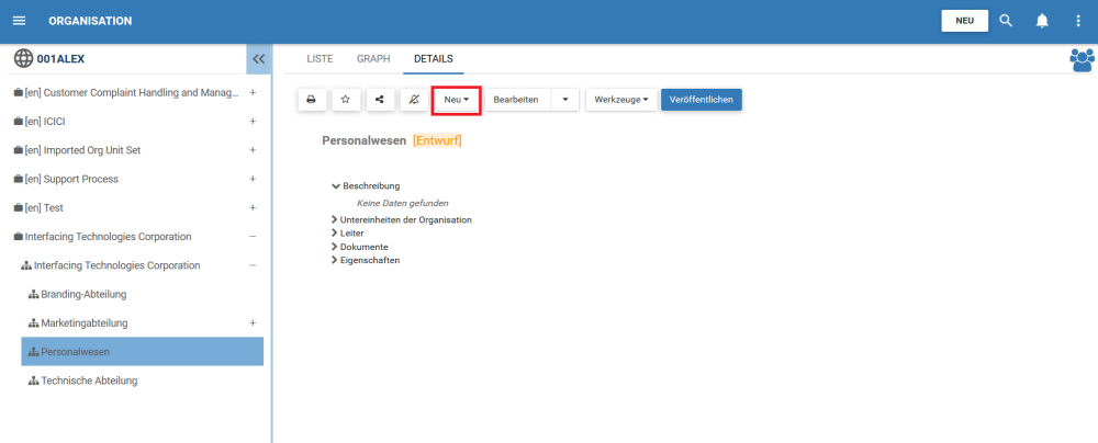1. Navigieren Sie zum Organisationsmodul