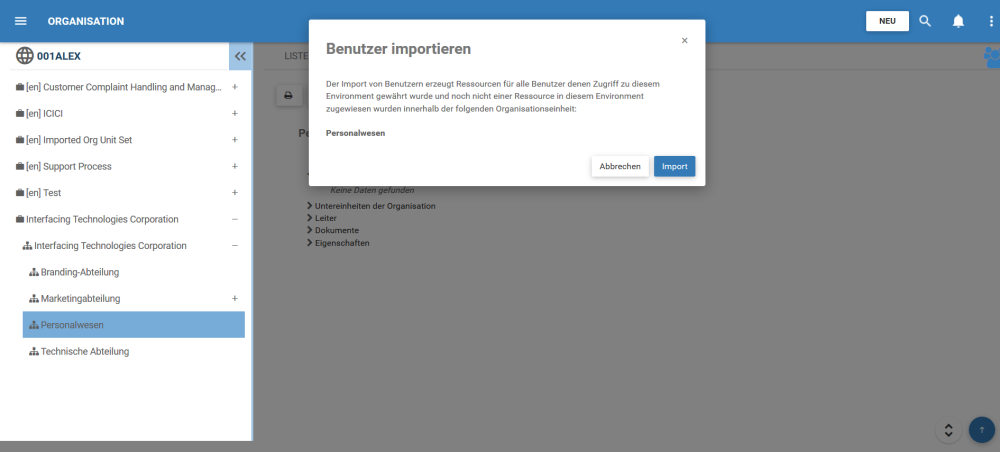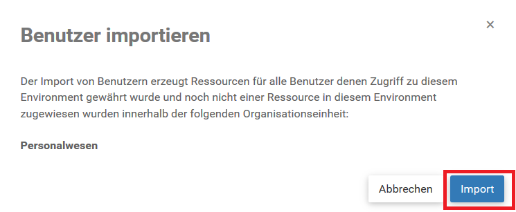 1. Klicken Sie auf um Benutzer in die Einheit “Personalwesen” zu importieren
