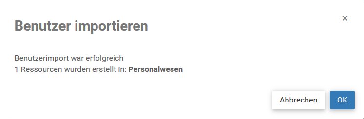 1. Ein Fenster wird generiert, sobald Benutzer erfolgreich als Ressourcen importiert wurden. In diesem Beispiel wurden zwei Benutzer importiert