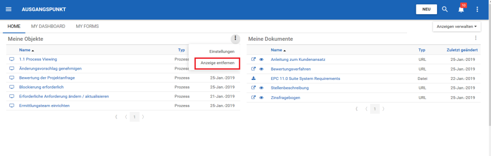 Im Folgenden werden die Schritte beschrieben, die erforderlich sind, um Widgets von Ihrer Homepage zu entfernen;