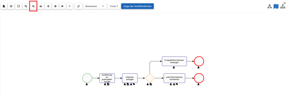 Die Zoomfunktion wurde implementiert, um Benutzern die Anzeige bestimmter Elemente innerhalb ausgewählter Prozesse zu erleichtern.