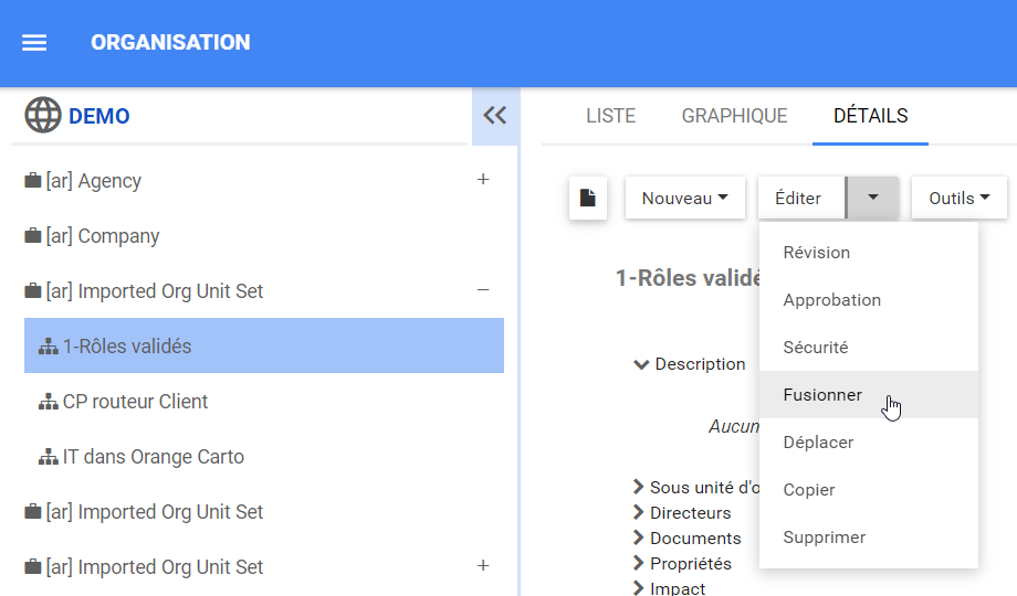 - Fusionner les unités organisationnelles