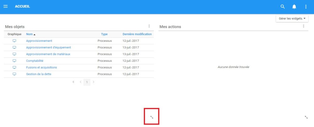 Les utilisateurs peuvent redimensionner les Widgets en utilisant l’icône située en bas à droite du widget. Cliquez simplement sur l’icône et faites glisser la fenêtre en diagonale jusqu’à ce que la taille souhaitée soit atteinte.