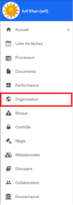 3. Par défaut, vous serez dirigé vers la liste dans le module Organisation (voir ci-dessous).