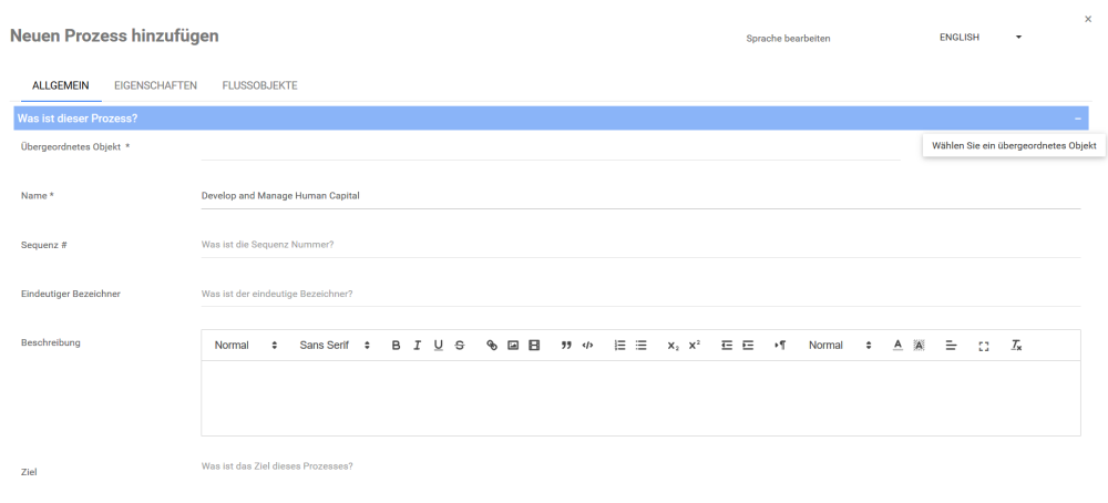 Für dieses Beispiel lautet der Name des Prozesses “Develop and Manage Human Capital”.