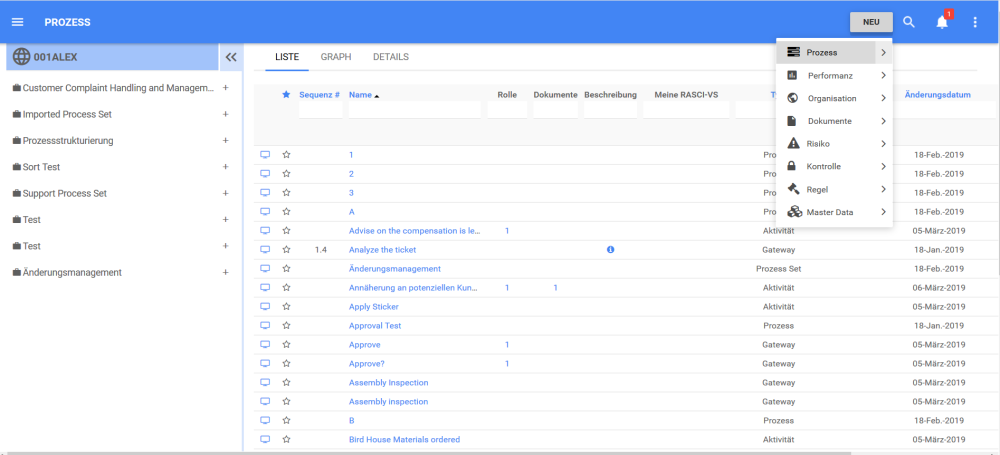 Um einen neuen Prozess über die Schaltfläche Neu zu erstellen, folgen Sie bitte den folgenden Anweisungen: