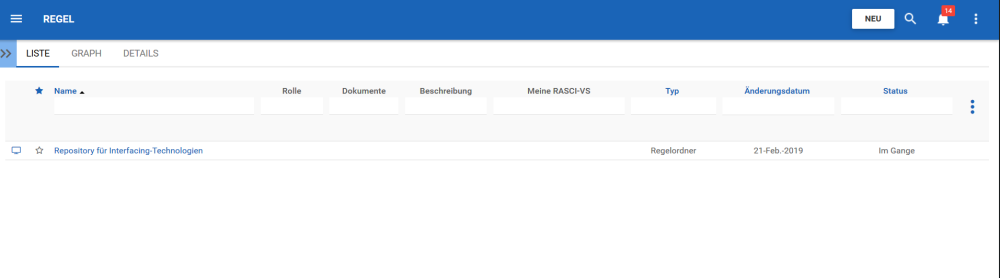 3. Sie werden im Regelmodul zur Listenansicht weitergeleitet (siehe unten).