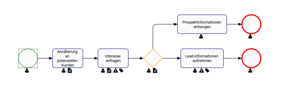 Die Diagrammansicht ermöglicht es dem Benutzer, Prozesse im traditionellen Flussdiagrammformat anzuzeigen. Auf diese Weise erhalten die Benutzer eine übergeordnete Sicht auf einen Geschäftsprozess, in der die wichtigsten Aktivitäten und die mit jeder Aufgabe verbundenen Kernpunkte beschrieben werden.