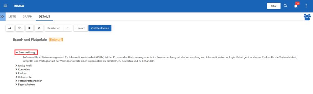 Der Abschnitt Beschreibung enthält alle Details zu einem Risiko sowie bestimmte Informationen, die bei der Ausführung helfen können. Diese Informationen, die von EPC-Modellierern ausgefüllt werden, werden den Benutzern weitere Details liefern.