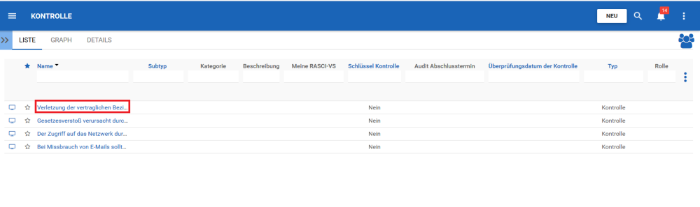 3. Standardmäßig werden Sie im Steuermodul zur Listenansicht geleitet.