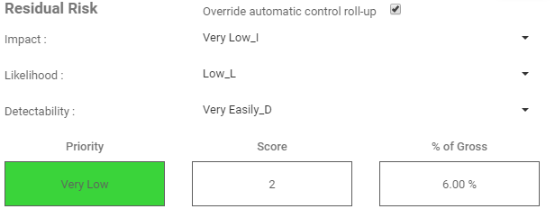 Manual overrides allow organizations to adjust Residual Risk scores when the system’s automatic calculation doesn’t reflect real-world conditions.