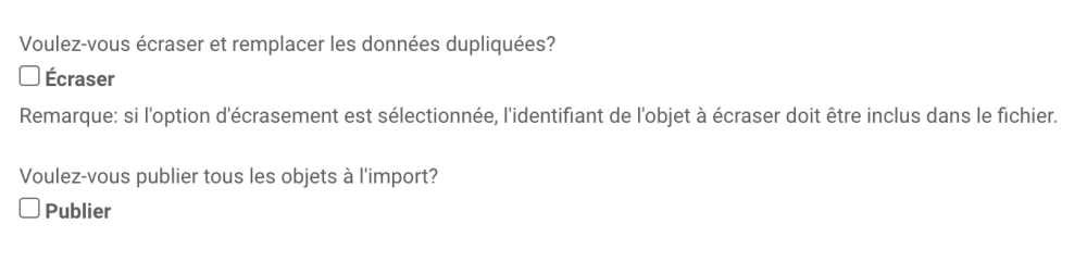 4. Il vous sera également demandé si vous souhaitez publier/écraser lors de l’importation.