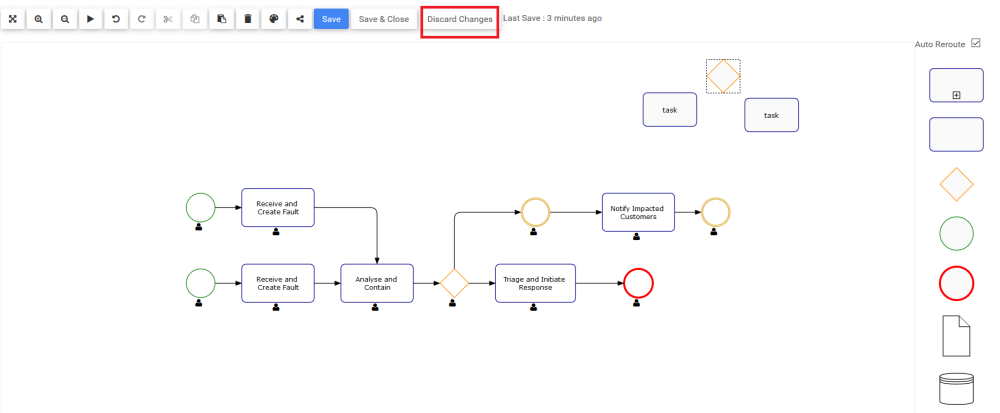- Les modifications apportées à la carte de processus n’ont pas été enregistrées. Vous verrez la dernière version de la carte qui a été enregistrée.